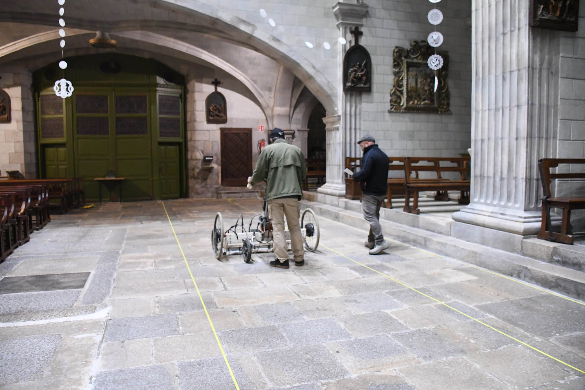 Aquesta feina aniria acompanyada d’una tasca d’investigació per georadar que permetés descobrir per primer cop les estructures primitives del subsol de l’església amb la detecció de possibles estructures anteriors a les actuals, que ajudarien a posar en context l’evolució de la construcció de l’església cassanenca.