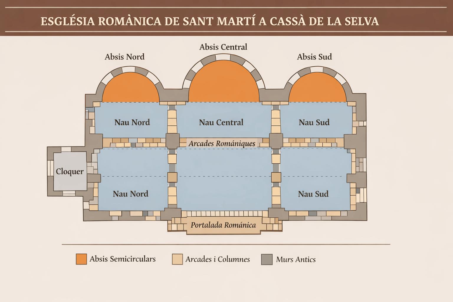 Se sap que Cassà de la Selva va créixer històricament al voltant d’una primera església romànica situada a la sagrera, fet que va determinar la configuració del nucli antic de la vila i el seu creixement urbà.