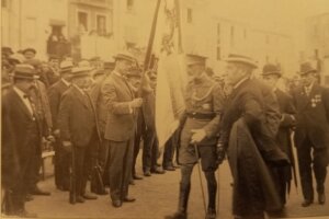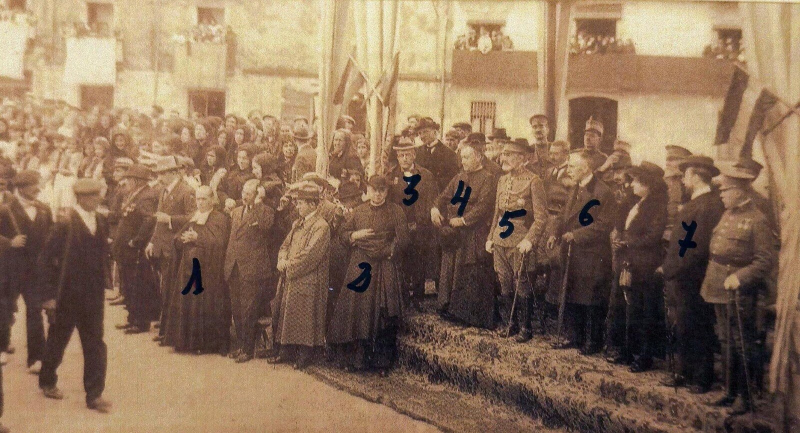 En disseccionar la imatge que ens ocupa, avui ens centrarem en la majoria d’autoritats que apareixen a la fotografia. D’esquerra a dreta s’hi poden identificar: el director del Col·legi La Salle, germà Arcadi Fèlix Xargayó Mir; un senyor amb americana i un altre amb gavardina, que de moment no han pogut ser identificats; el capellà; l’organista mossèn Gabriel Garcia i Anglada; l’alcalde de Cassà, Salvador Sabaté i Isern; el rector de Cassà, mossèn Joaquim Bosch; el capità general de Catalunya, Joaquim Lleó Milans del Bosch; el comte de Fígols; la senyora Clotilde Surís Llagostera, comtessa de Llar; i el cap d’instrucció dels Sometents de Catalunya, Artur Rissech Vingut, acompanyat del governador militar de Girona.