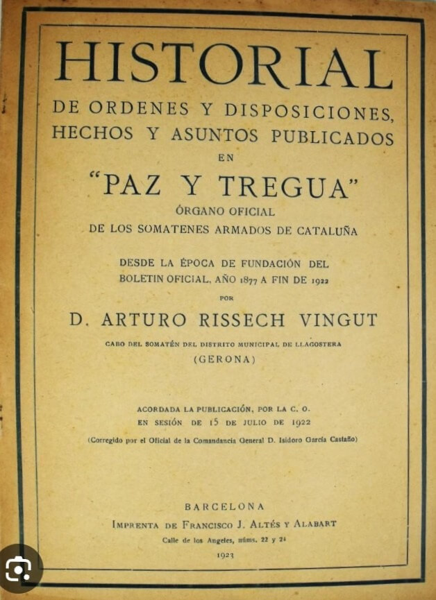 7. Artur Rissech Vingut (Llagostera, 1873 – 1928), cap d’instrucció dels Sometents de Catalunya. Comerciant i propietari, fou una figura destacada de la vida pública de Llagostera i reorganitzà l’Hospital del municipi entre 1920 i 1924. La seva aportació més rellevant al Sometent fou la recopilació de l’obra Historial de órdenes y disposiciones, hechos y asuntos publicados en “Paz y Tregua”, órgano oficial de los Somatenes Armados de Cataluña, que recull els butlletins oficials del Sometent entre 1877 i 1922.
