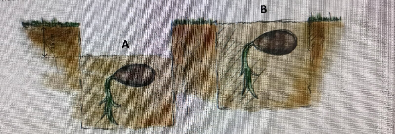 • Plantar-les horitzontalment entre 5 i 15 cm de profunditat (la part del caputxó donarà les fulles i la part punxeguda, el fibló, que seran les arrels).